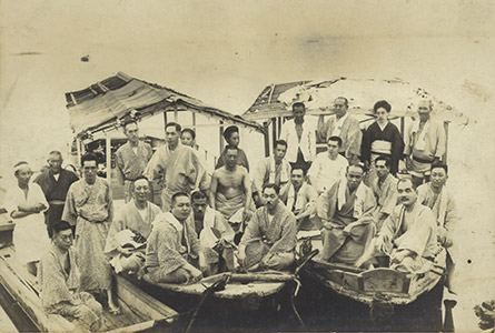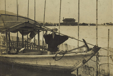当時の船は当然エンジンはついていませんので、木の棒(艪)で操船していました。
