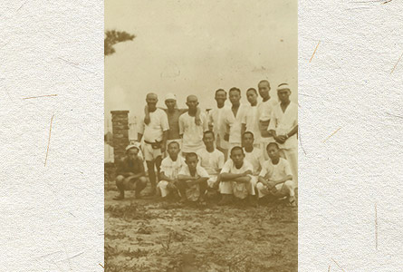 写真は昭和初期に当組合の近くを流れる熊野川の地先で魞が建てられたあとの様子です。この時は、守山から応援に駆け付けていました。