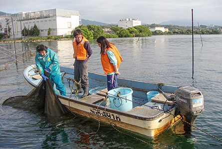 琵琶湖で共同研究している近畿大学の学生と一緒に、琵琶湖の魚を使った商品開発や販売方法の検討も行ってきました。これからの世代の若者に、琵琶湖の恵を理解していただくことが、琵琶湖の未来につながります。これからも若い方々に受け入れてもらえるような商品を生み出していきます。